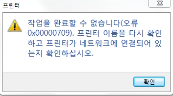 작업을 완료 할 수 없습니다.(오류0x000000709). 프린터 이름을 다시 확인 하고 프린터가 네트워크에 연결되어 있는지 확인 하십시오. 문구 해결 방법입니다.