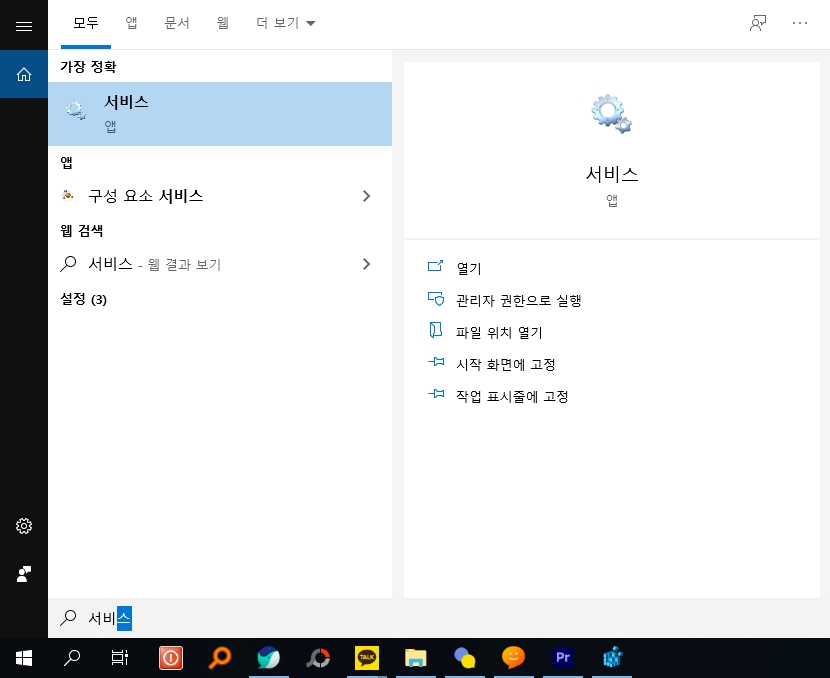 시작키를 눌러 서비스를 입력하여 들어갑니다.