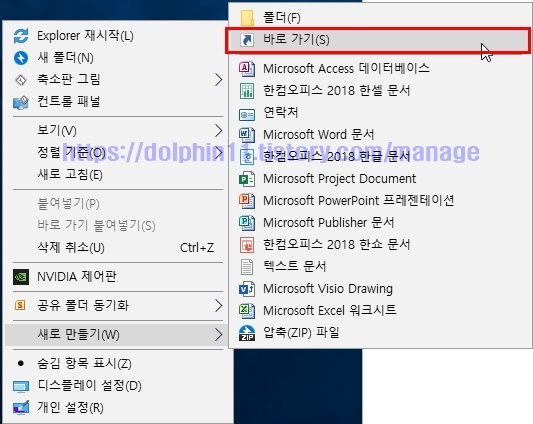 바탕화면이나 작업 표시줄에 바로 들어갈 수 있게끔 생성 할 수 있습니다.