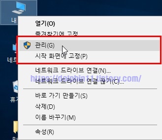 내 PC의 우클릭 - 관리를 들어가줍니다.