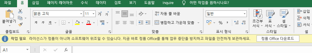 작업 필요 라이선스가 정품이 아니며 소프트웨어 위조일 수 있습니다. 지금 바로 정품Office를 통해 업무 중단을 방지하고 파일을 안전하게 보관합니다. [ 정품 Office 다운로드 ]