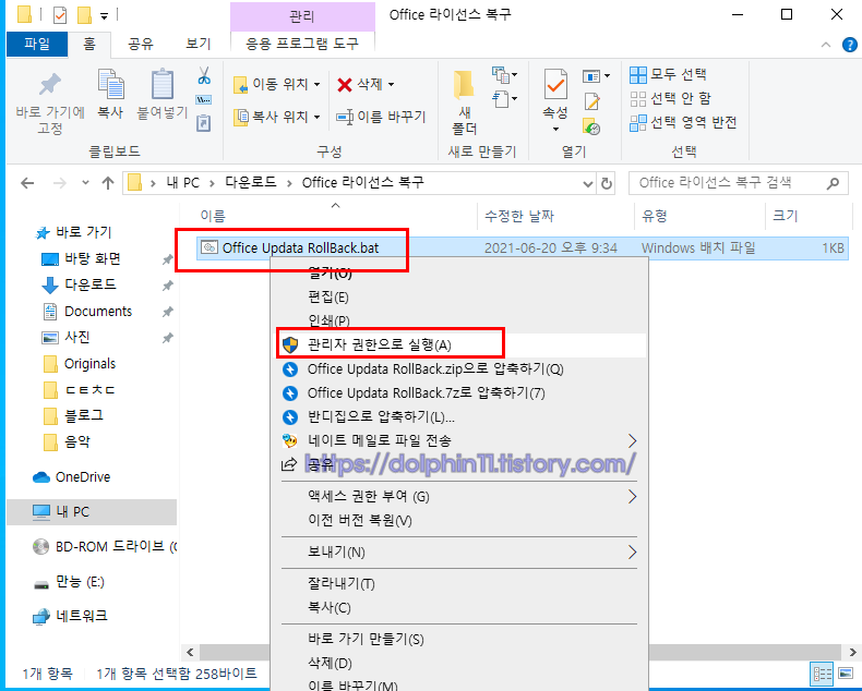 그리고 엑셀창 열려있는것들은 전부 닫아 주신후. 아래에 있는 배치(.bat) 파일을 다운 받습니다.