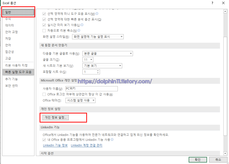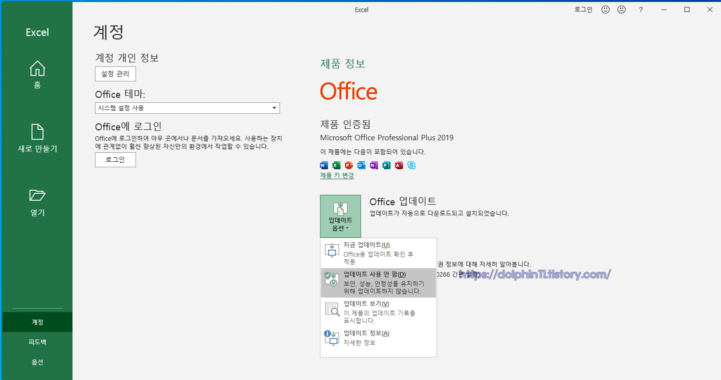 저는 오피스2019를 기준으로 기재했지만 오피스는 버전 자체에서 크게 차이가 없습니다.
