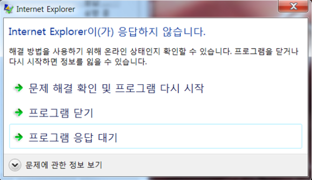 윈도우를 사용하다가 Internet Explorer가 응답하지 않습니다.