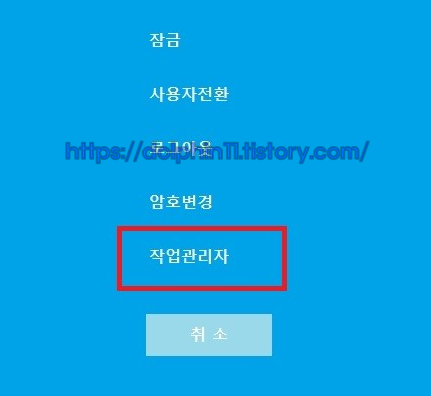 시작 버튼에 우측 버튼 클릭 - 작업관리자 들어갑니다.