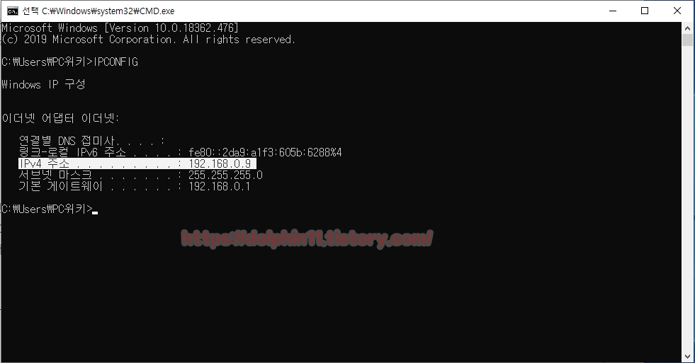 위에처럼 PC의 IP 192.168.0.9 대역과