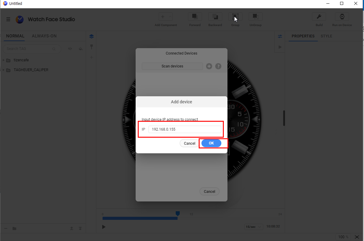 제 스마트워치의 IP는 192.168.0.155 이기때문에 입력 하고 OK 눌러 주면