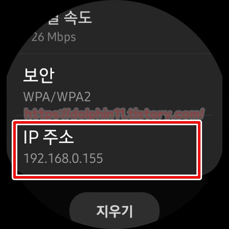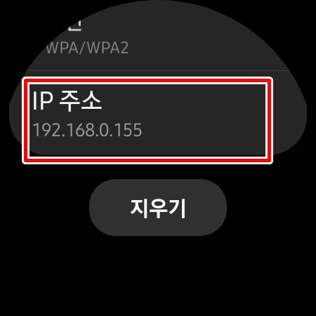 갤럭시워치4의 IP 192.168.0.155