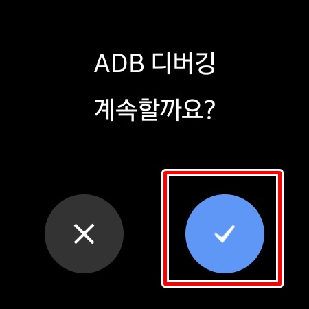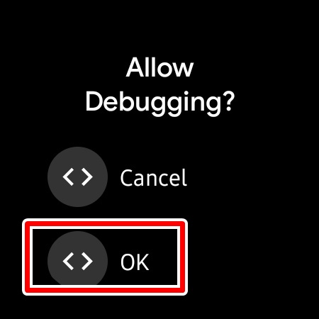 다시 스마트워치 화면에 Allow Debugging? 이라고 뜨면서 OK Cancel 이 나옵니다