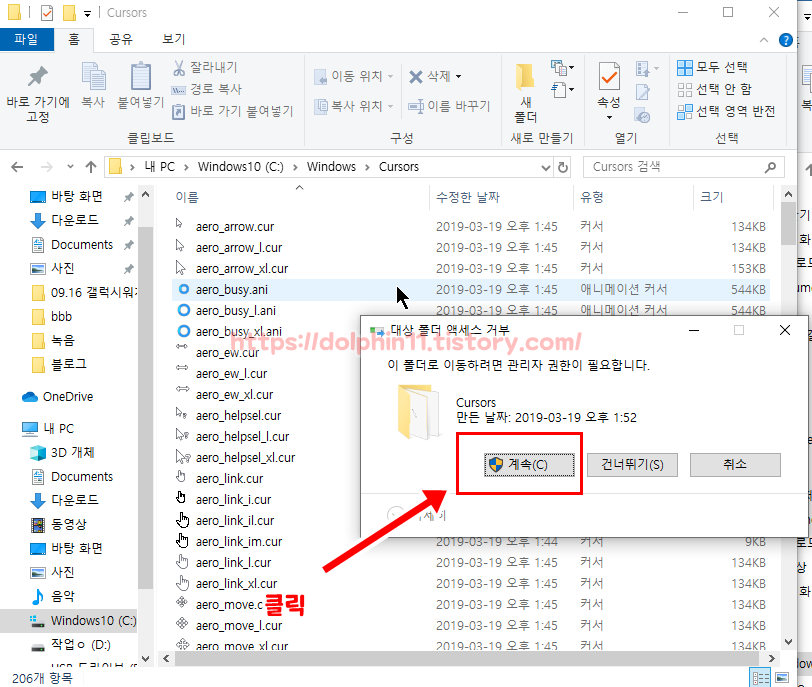 내PC - C드라이브 - Windows 폴더 - Cursors 폴더로 이동하여
