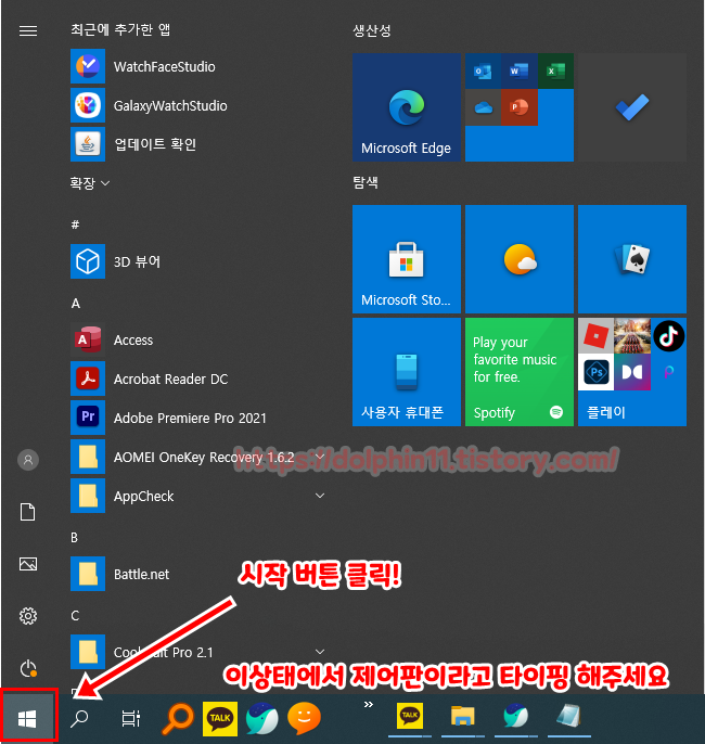 좌측하단에 윈도우모양(시작)키를 눌러 줍니다.