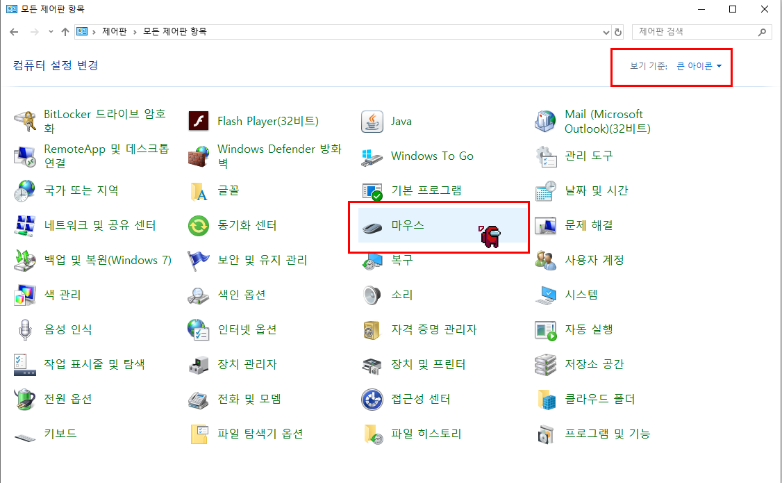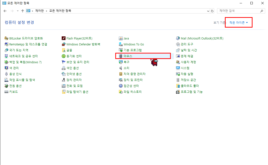 제어판 - 마우스 속성으로 들어가줍니다.