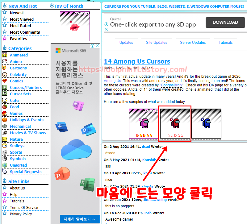 저는 보여드리기 위해 Among Us Cursors(어몽어스 커서) 를 다운로드 받아 설명 드리도록하겠습니다.