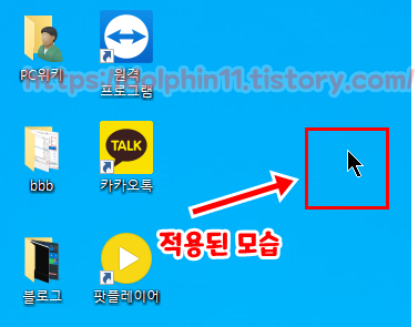 적용 된 이후 마우스 포인터가 선택한 마우스 포인터로 변경 된것을 확인 할 수 있습니다.