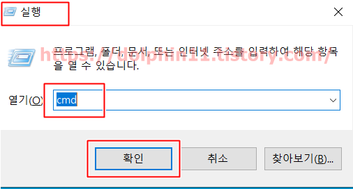 cmd를 입력하고 확인 버튼을 눌러 줍니다.