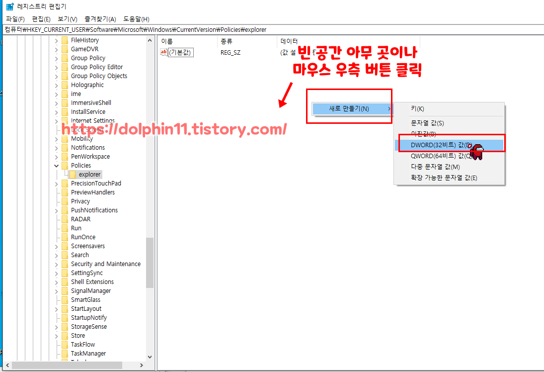 새로만들기 - DWORD(32비트)값을 클릭 합니다.