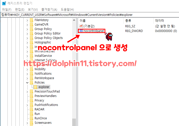 레지스트리로 제어판(windows 설정) 접근 금지 하는 법