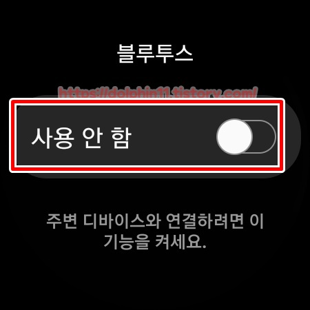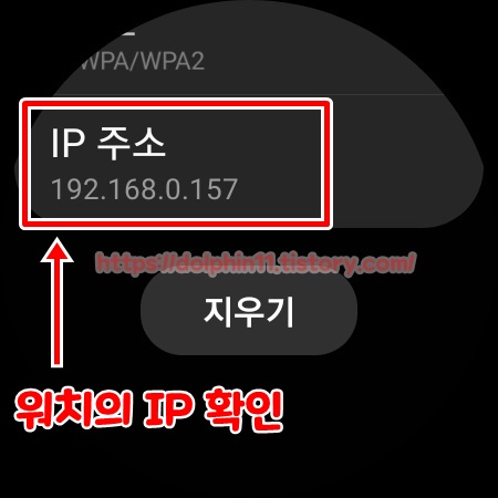 아래로 내려주면 갤럭시워치4에 부여받은 IP 주소가 나옵니다. 이것을 메모장이나 빈 종이 같은곳에 적어두세요. 그리고 다시 뒤로 돌아가 블루투스 사용 중인지 확인합니다. 사용 중이라면 사용 안 함 으로 변경 해줍니다. 이렇게하면 갤럭시워치4의 세팅은 끝납니다.