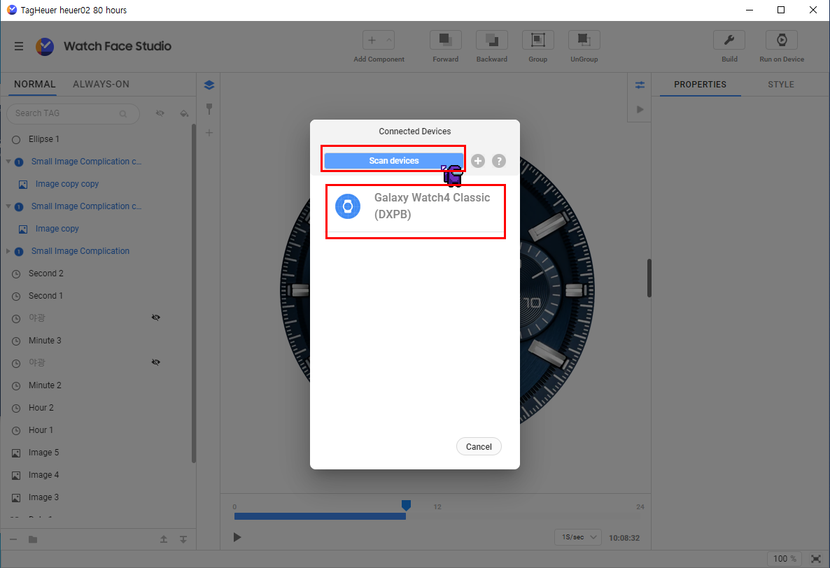 저처럼 바로 보이시는 분이 있을거고 바로 보이지 않을 수 도 있습니다. 이럴경우 'Scan devices' 를 클릭하면 Galaxy Watch4 Classic 이 보여지게 됩니다. 이제 보여지는 워치4를 클릭 해주고 약 10~15초정도 기다려주면 됩니다.