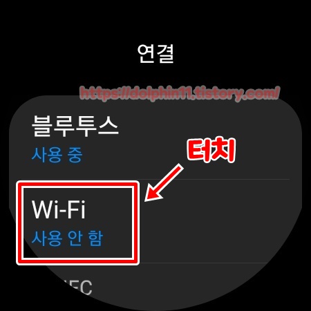 '연결' 항목을 선택하여 Wi-Fi를 클릭하여 내가 연결하고자하는 공유기를 선택 합니다.(PC와 연결되어있는 공유기여야함) 저같은 경우 PC가 iptime으로 연결 되어 있으므로, iptime 공유기로 연결 하겠습니다. 연결됨 으로 표시가 되었다면 연결된 공유기를 한번 터치 해서 들어갑니다.