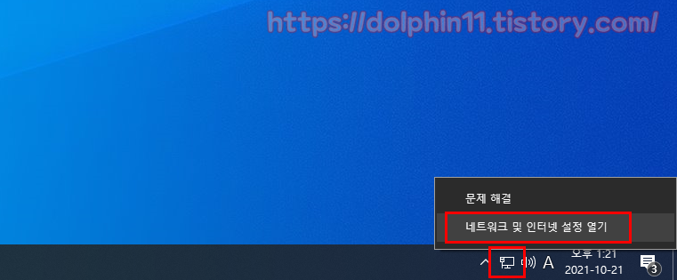 네트워크 및 인터넷 설정 열기를 클릭하여 열어줍니다.