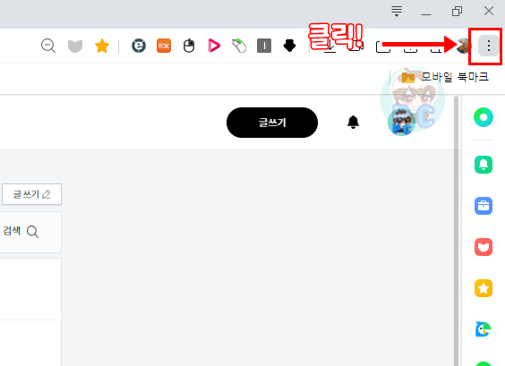 우선적으로 네이버 웨일브라우저에서의 세팅입니다.