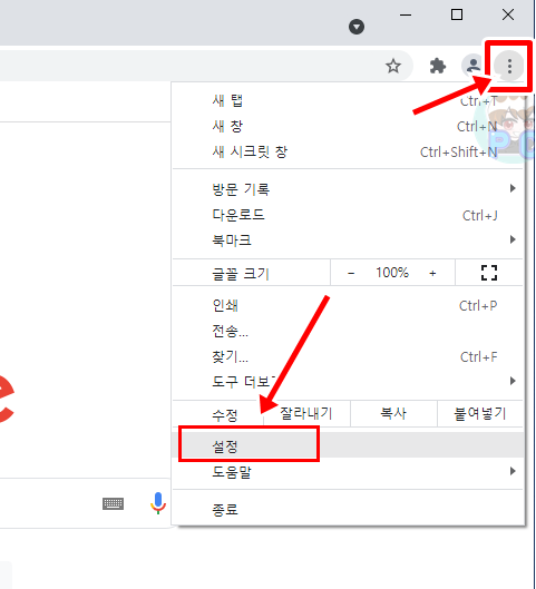 크롬도 웨일 브라우저와 크게 다르진 않습니다.