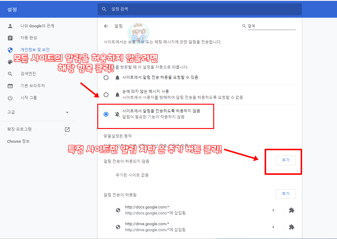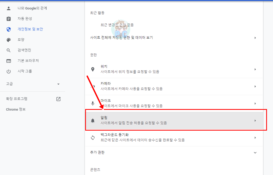 크롬 브라우저에서 알림을 차단 하는 방법