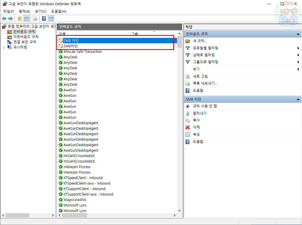 그럼 이렇게 SMB 차단이 2개가 생성 되어야 합니다.