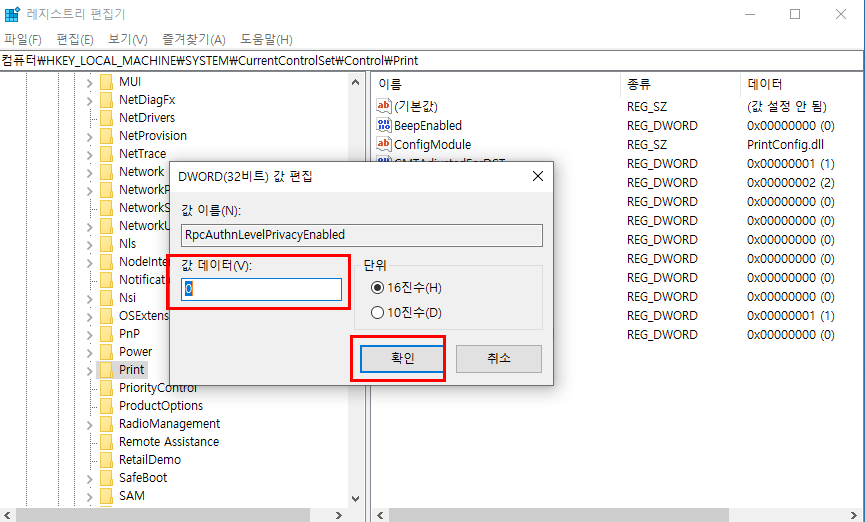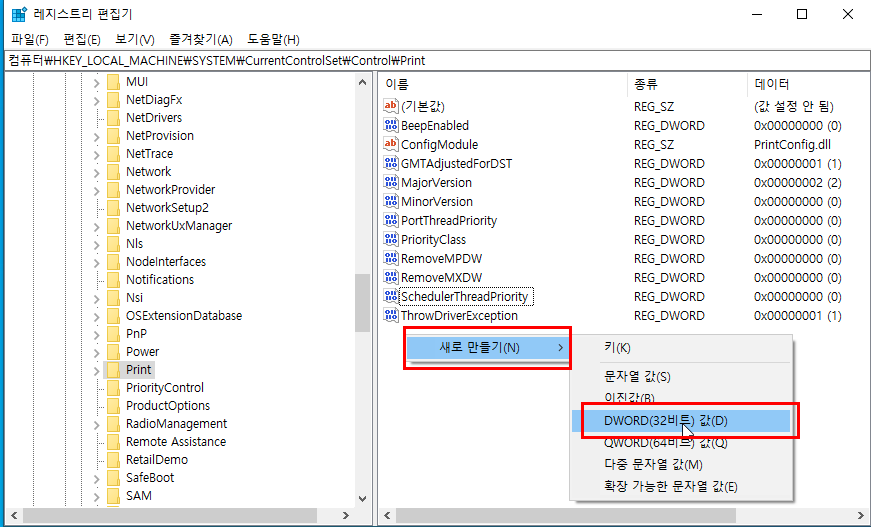 컴퓨터\HKEY_LOCAL_MACHINE\SYSTEM\CurrentControlSet\Control\Print