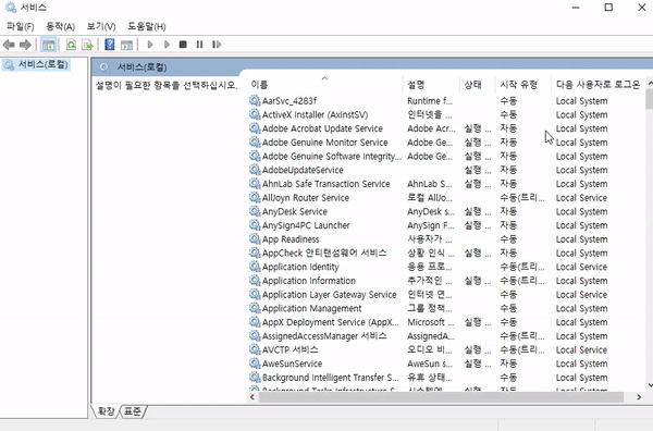 services.msc 를 입력하여 서비스 창을 띄어 줍니다.