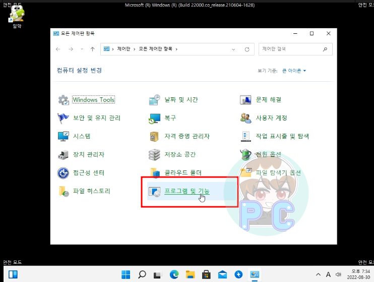 프로그램 및 기능 을 눌러 프로그램 추가/제거 창을 열어 줍니다.