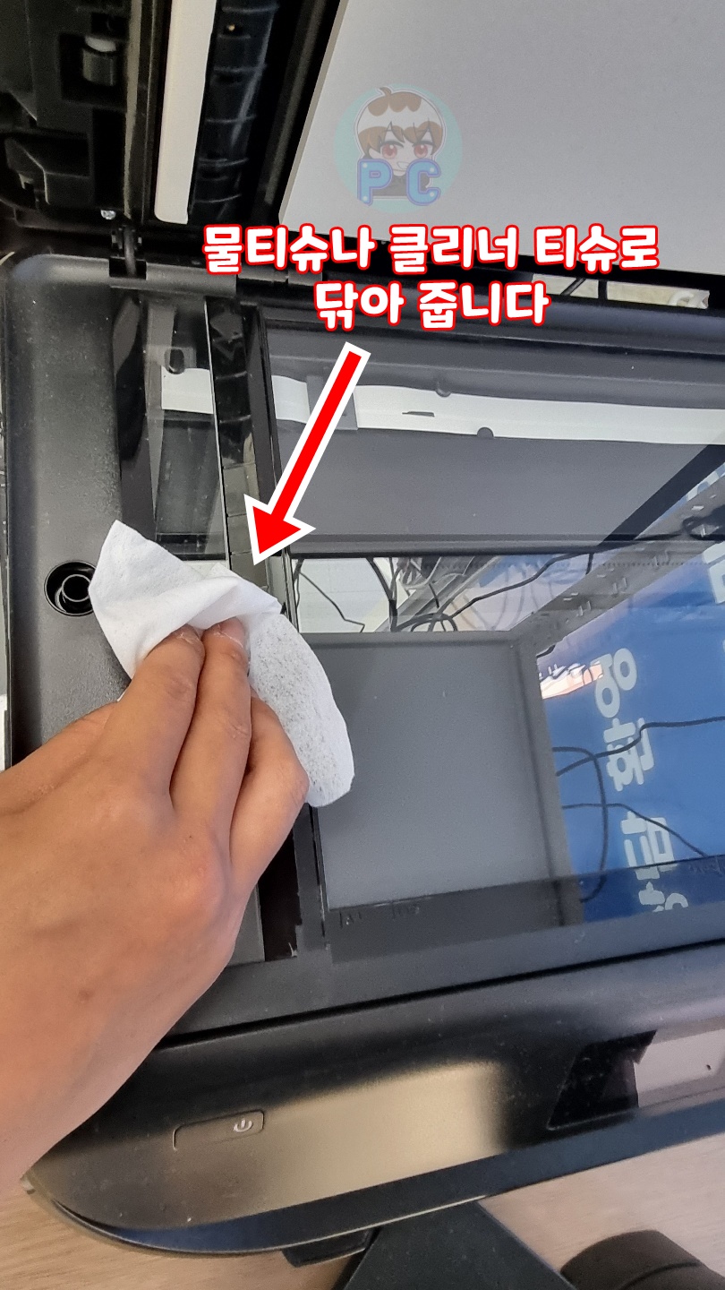 물티슈나 클리너 티슈 같은 걸로 저 유리면을 깨끗이 싹싹 닦아 줍니다.