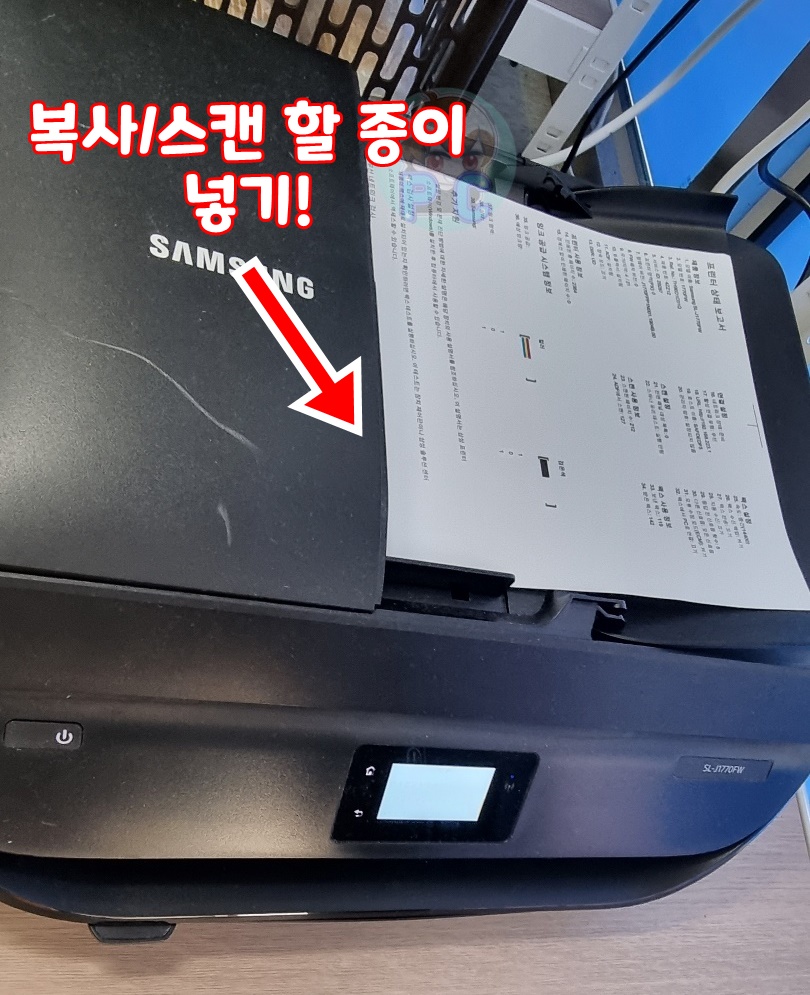 그런 다음 다시 복사/스캔 할 종이를 껴넣고 테스트 하면 정상 출력 되는걸 확인 하실 수 있습니다.