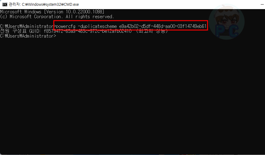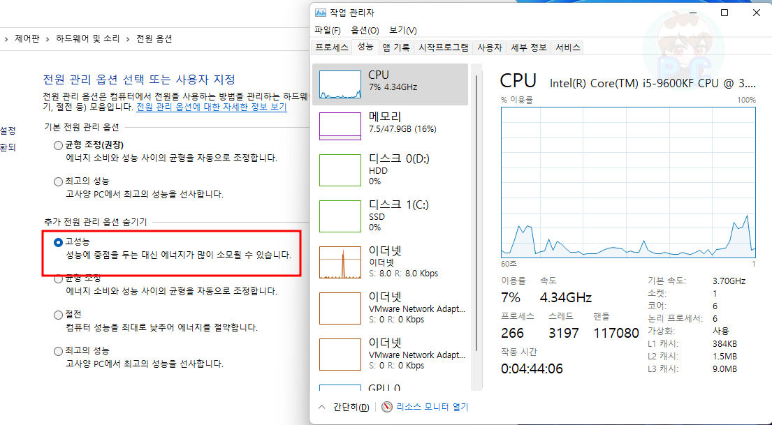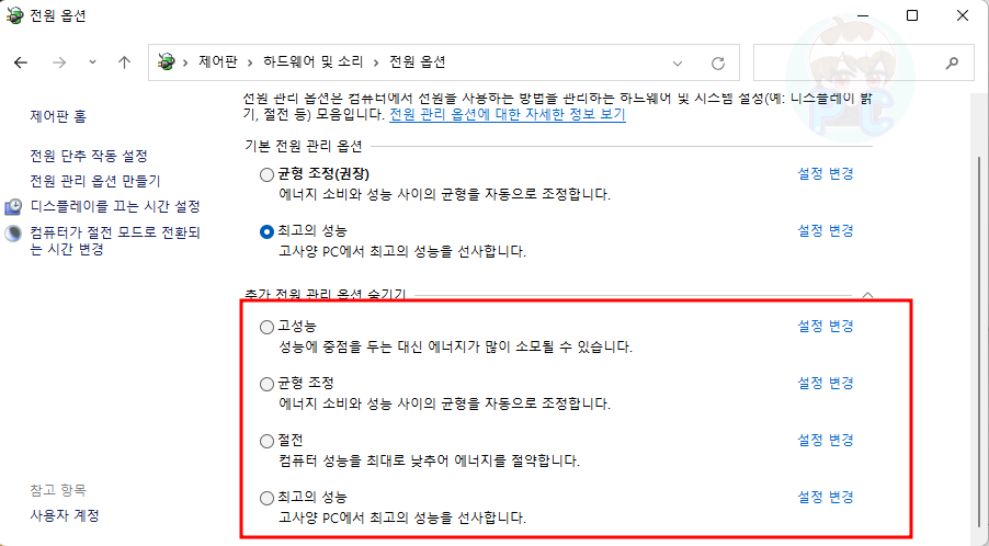 전원 관리 옵션 선택 과 명령 프롬포트 창을 활용하여 세팅하기!
