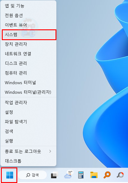 시스템 시작에 Windows 11 이 표시 되어있는 바로 밑에