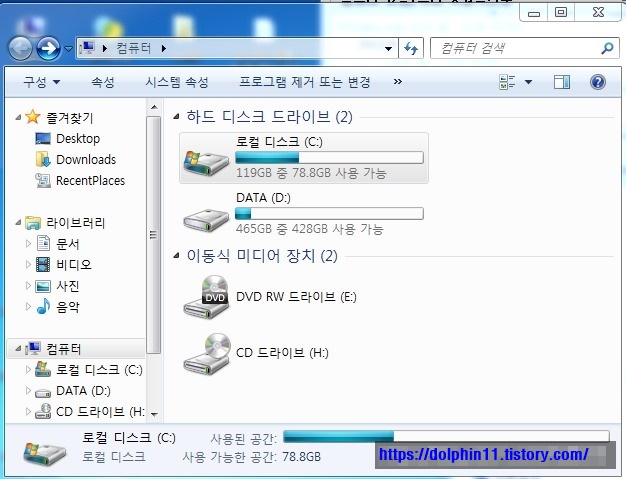 블로그 작업하시는 분들이나 귀찮아서 바탕화면에 꺼내서 쓰시는 분들!!! C 드라이브 용량이 부족/하드디스크의 속도가 저하되시는 분들을 위해 고~~~급 정보를 공유해드리기로 합니다!!! 기존 C 드라이브의바탕화면/즐겨찾기/내 문서/검색/내 비디오/내 사진/내 음악/다운로드/링크/연락처/저장된게임등 D 드라이브로 옮겨서 용량 확보를 하고, 이 로써 주 하드디스크(C 드라이브)의 속도를 조금이나마 향상(?) 할 수 있게 됩니다. 자 그럼 어떻게 하는지 함께 해 보실까요~? ※또한 앞으로 바탕화면에 저장하게 되는 자료들은 C 드라이브의 용량이 아닌 D 드라이브의 용량을 잡아먹게 됨으로써, C 드라이브에는 전혀 영향을 받지 않습니다.