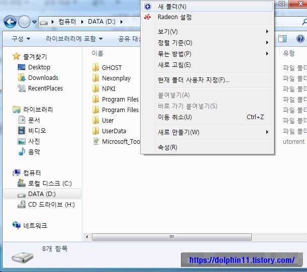 1. 오른쪽 마우스를 눌러, 새 폴더를 생성합니다.