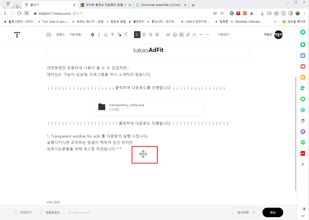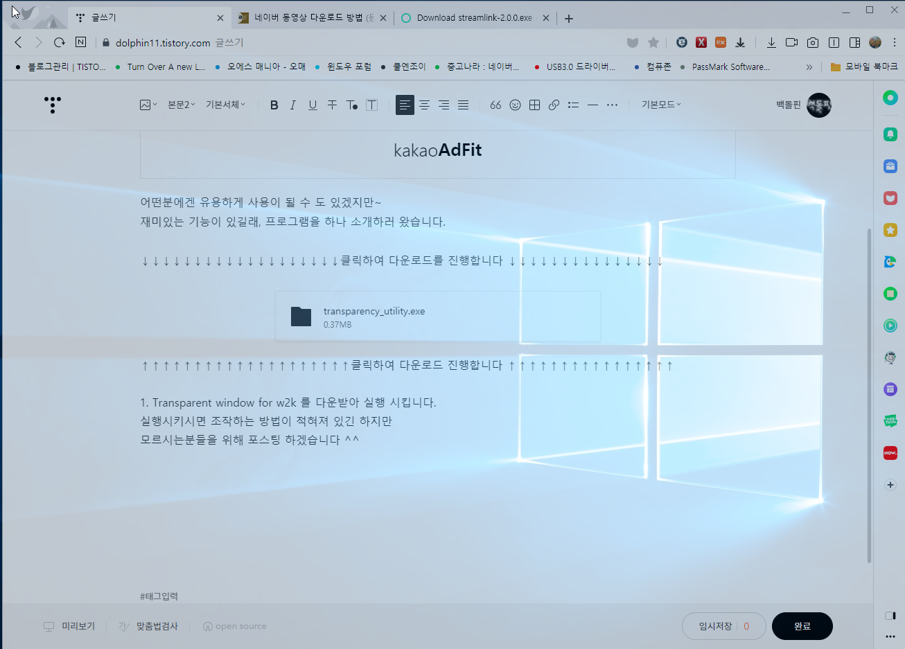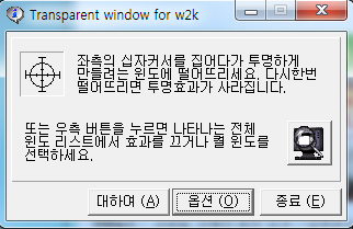 1. Transparent window for w2k 를 다운받아 실행 시킵니다.