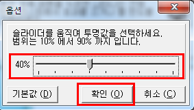 바로 투명도를 설정할수 있는 게이지 인 셈이지요.