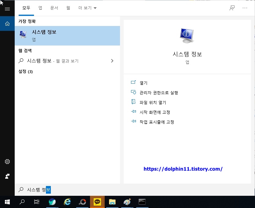 시작키를 눌러 시스템 정보를 입력 해주시고 열어줍니다.