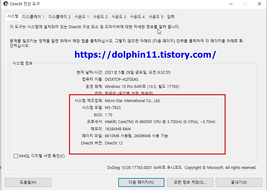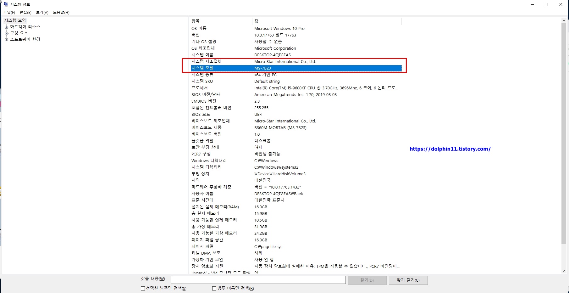 CPU모델/메인보드 모델/메모리 용량 까지 세세하게 정보가 나옵니다.