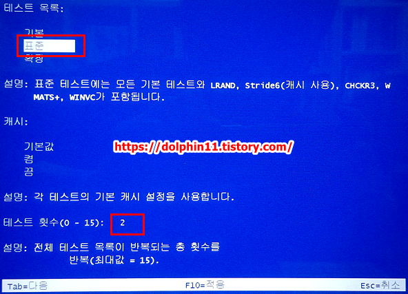 표준모드는 2번 반복, 옵션을 바꾸고 싶다면 F1키 입력하면됩니다.