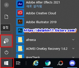 윈도우 시작 버튼의 설정을 들어갑니다.